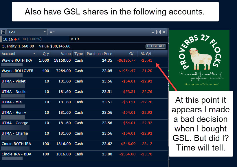 I have invested in GSL shares in our own retirement accounts, and in the UTMA accounts for our grandchildren.