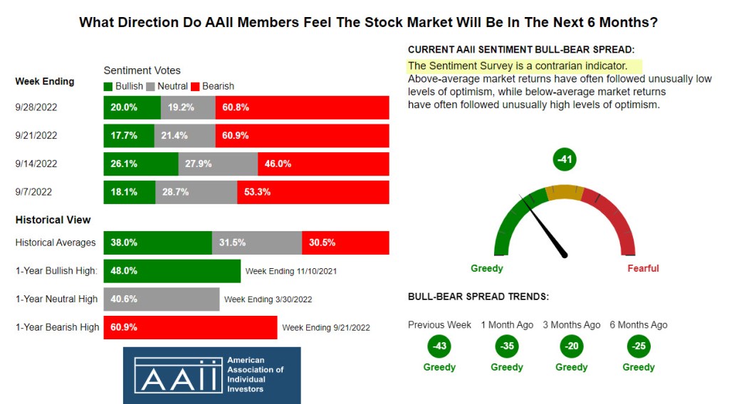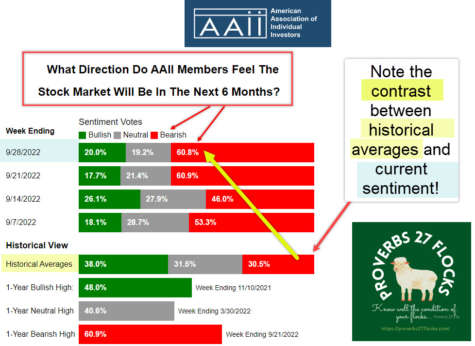 “The latest AAII Sentiment Survey shows that the percentage of individual investors describing their six-month outlook for stocks as “bearish” rebounded to its highest level since 2009. Plus, this week’s bullish sentiment reading ranks among the 20 lowest in the survey’s history.” AAII LINK