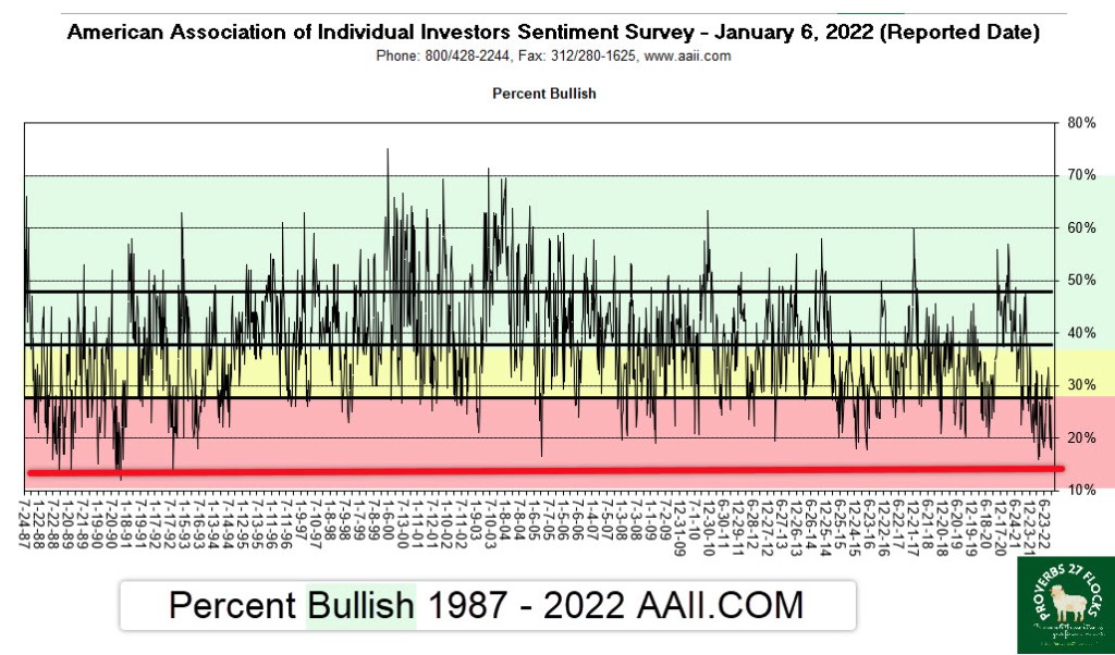 This is the fourth in my loving the Bear Market series. When hordes of investors are bearish it is likely that overall sentiment (outlook, opinion, attitude, feeling, emotion) is negative. The AAII organization does regular polls of investor sentiment. I love the current bear because I don’t have to make any income, investing, or giving decisions based on sentiment. Furthermore, the bear market sets me up for some great ROTH conversions! This is true today and might also be true in early 2023.