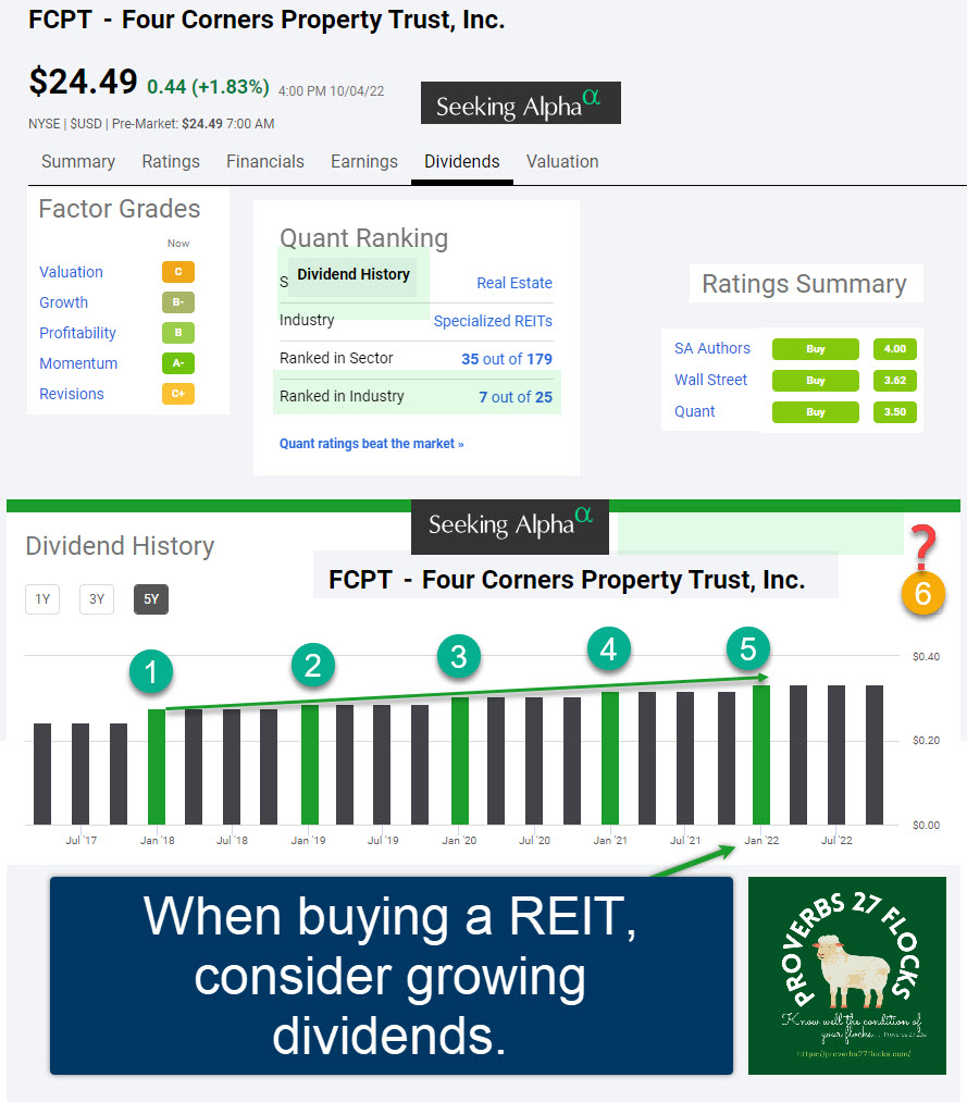Cindie and I own a total of 300 shares of FCPT. And the dividends will probably keep coming!