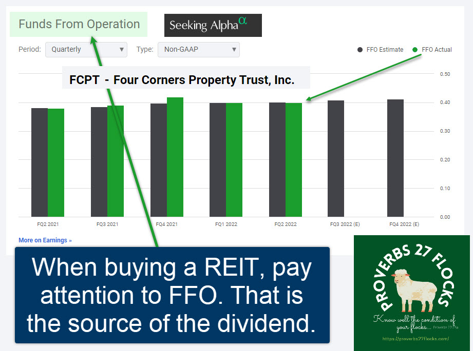 FFO pays the dividend. Therefore, I want to know that the FFO is sufficient to cover the dividend. I don’t want to own a REIT that cannot pay me.