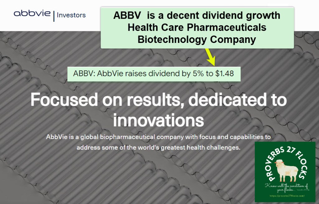 Not too many days ago I welcomed an 11.6% increase in the dividend for ARCC, a financial company. Then I reported a 4.9% increase for our GTY holdings, which is a REIT. Today the good news comes from a pharmaceutical company we own: ABBV. ABBV’s increase is 5.0%.