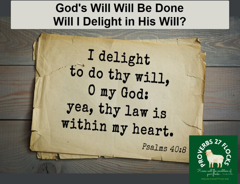 Next Sunday I have the privilege of preaching. As I consider the text, I am asking myself a crucial question: “What is God’s will?” The answer to that question is so very important. You cannot fight against it and win. You can delight in it when you see how good God’s will really is.