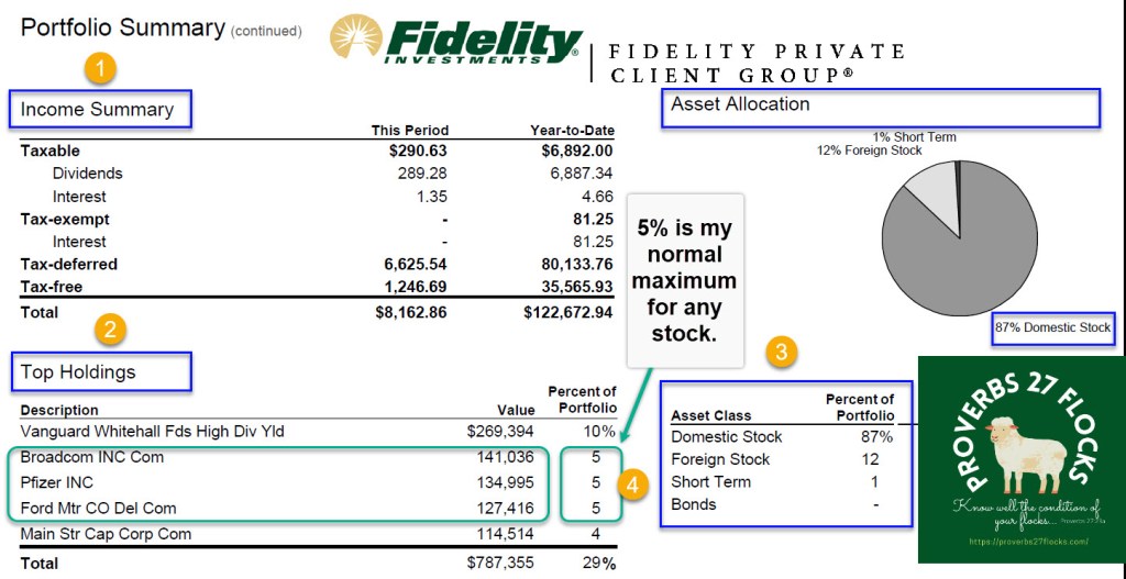 If you have too much invested in a single company’s stock, this can be a problem. The Fidelity statement can help you pinpoint areas of potential trouble. For example, if you have Apple stock, and that stock is 10% of your total retirement savings, then you might want to revisit that allocation.