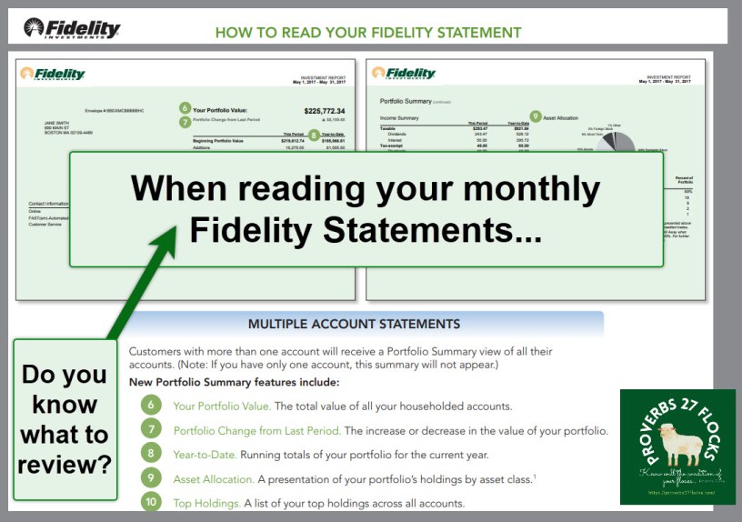 Every month I glance through my Fidelity Investments Statement. Our statement is 78 pages long and contains information about our eight investment accounts. Two of the accounts are traditional IRAs, two are ROTH IRAs, and the other four are taxable brokerage or money accounts. Reading 78 pages every month is not a good use of my time. But there is a good reason to read some of it.