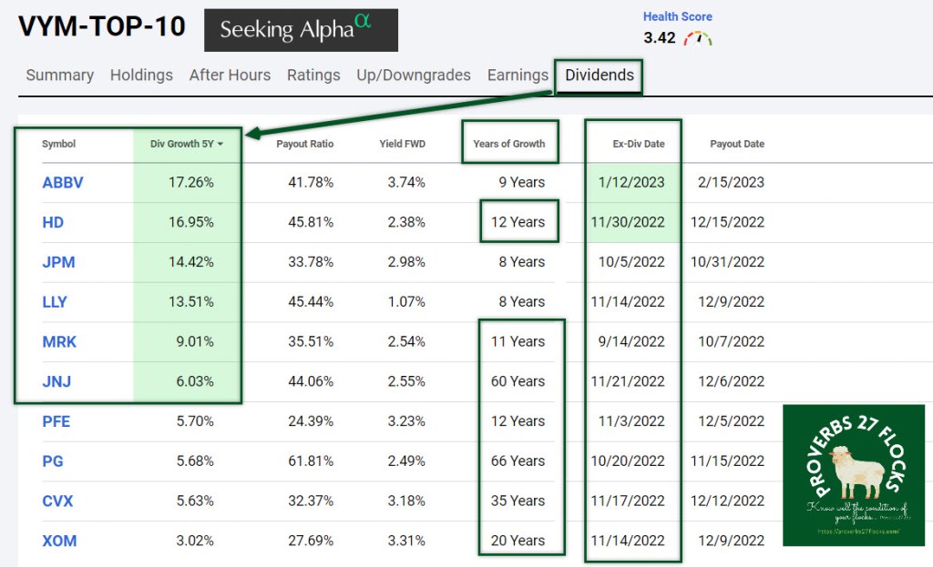 Cindie and I own a combined total of 2,530 shares of VYM.  We hold 750 shares of SCHD. We have 501 shares of DGRO. There are other ETFs and many dividend growth stocks in our portfolio. Some of them are ABBV, PFE, and HD.