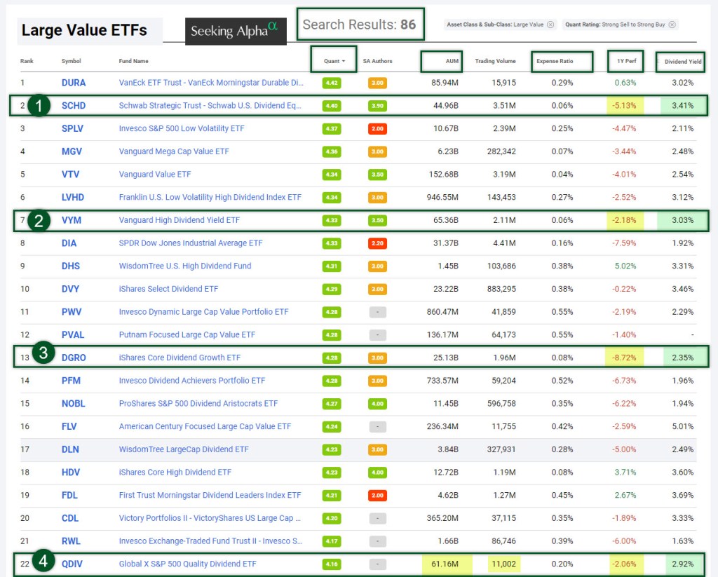 “QDIV begins its stock-picking process by ranking the S&P 500 stocks by both quality and dividend yield. The “quality” score is determined by financial metrics such as return-on-equity, the accruals ratio, and financial leverage. Those considered for inclusion in the fund are those in the top 200 (or top 40%) in both categories. There is no limit on the number of stocks held, but the ETF currently holds 70 components.” – Seeking Alpha