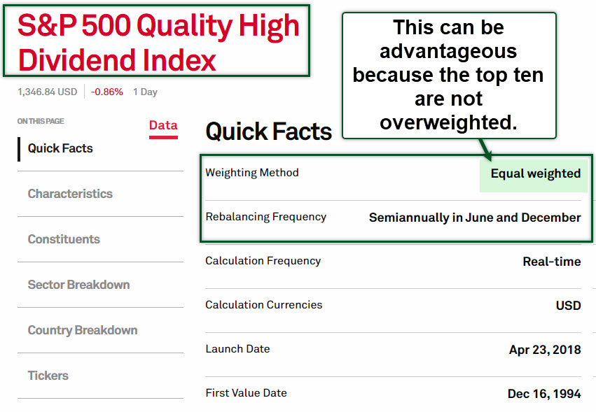 There are a couple of reasons I like QDIV. Don’t get me wrong, I am not going to sell our shares of VYM, SCHD or DGRO. But there are some advantages to adding QDIV to the ETF mix. There are also some risks, but I don’t consider them significant. Let me share the advantages, the disadvantages, and some information about the index used as the benchmark for this ETF.