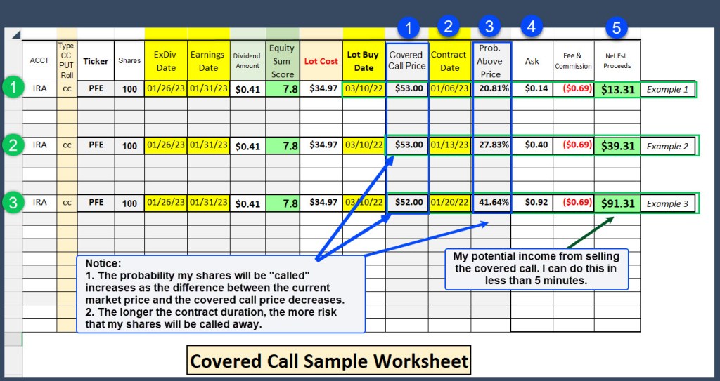 Another factor that will cause me to be careful is that some of my positions are big contributors to my annual dividend growth income. For example, I don’t want to be hasty with CCO contract sales for ABBV or PFE. They are key positions in our portfolio. However, if I decide I want to lighten up on PFE or ABBV, and take some profits, a CCO can be a great strategy to gain additional income AFTER the dividend is guaranteed.