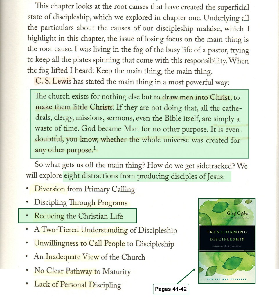 Eight Distractions from producing disciples of Jesus. Source: Transforming Discipleship, Greg Ogden pages 41-42