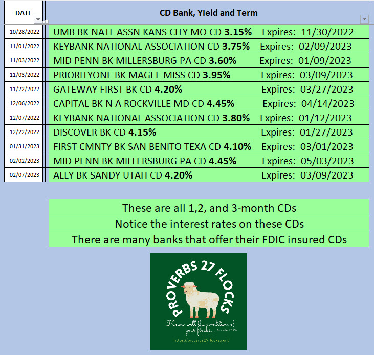 It is best for most prudent savers to move their money to either an online bank and/or to a place like Fidelity Investments. I have been buying CD’s for Cindie with some of her cash. Here is an example of the CD’s she has.