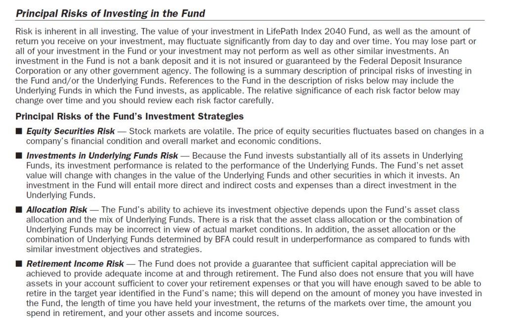 The LIKKX BlackRock LifePath® Index 2040 Fund Retirement has an expense ratio of 0.09%. That isn’t bad. There is no “front load” on the fund. However, the “P” version of the Index 2040 fund has an expense ratio of 0.39%. Even worse, the prospectus for the “P” shares shows a “Maximum sales charge”, also known as a load, of 5.25%. You need to know this. Why?
