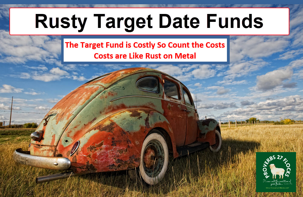 When you invest in a conservative way, you also have growing rust that is compounded year-after-year. This means that your investment growth will be less, so the compounding on your total dollars invested will be less. If you are satisfied with 5% returns, or even 7% returns, you will have some total growth. However, target date funds tend to seriously underperform because they increase, year-after-year, the allocation in low or no growth investments like bonds. This has a compounding rusting impact on your total assets and your potential income.