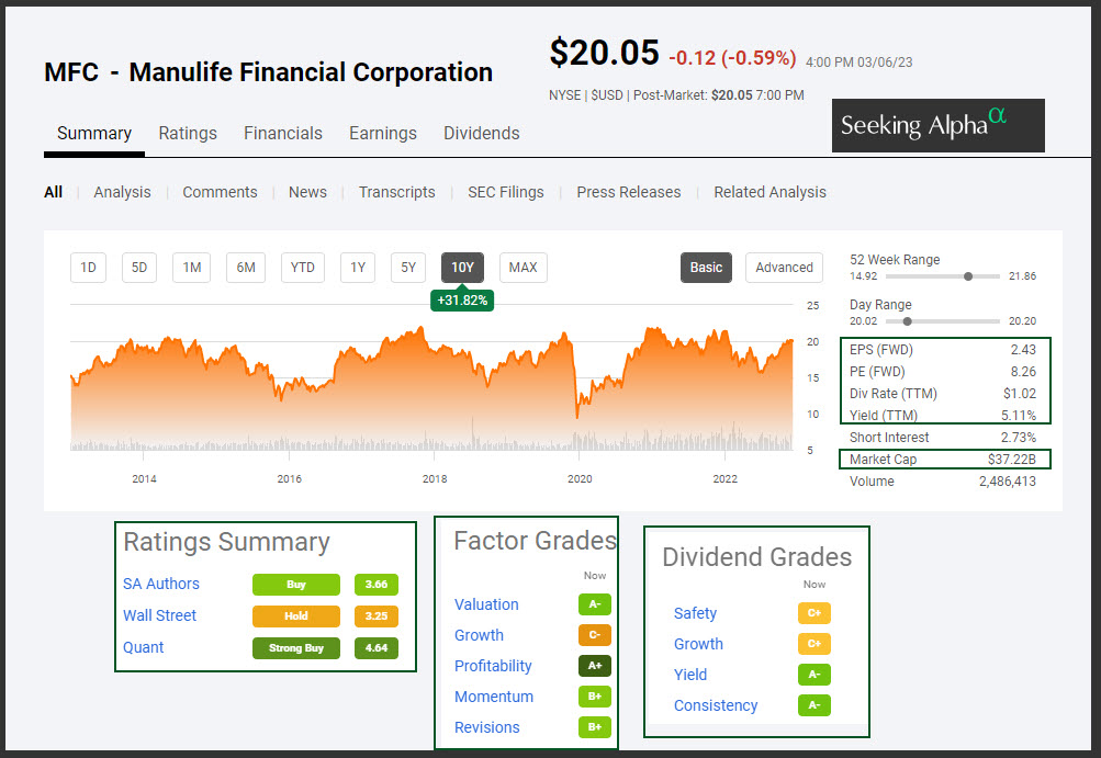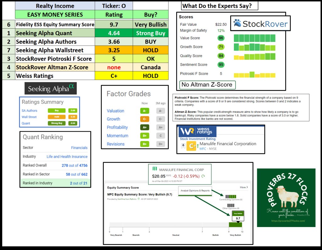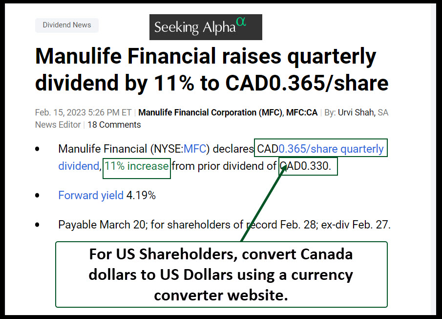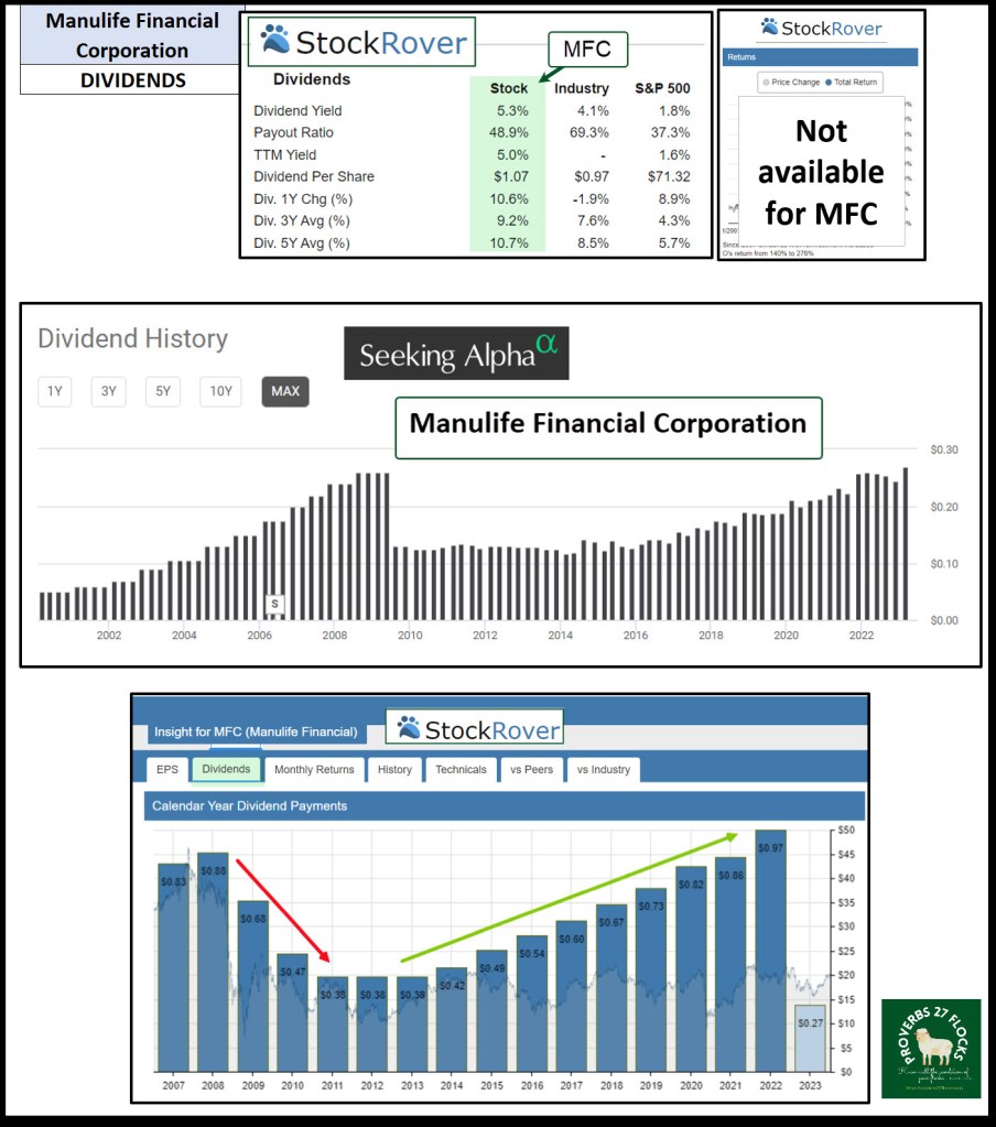 Cindie and I own a combined total of 1,500 shares of MFC. Those shares are worth approximately $30,000. Therefore, MFC is NOT one of our top ten investments. Always bear in mind that our ownership is not a recommendation to buy the investment. Always align your investment purchases with your written investment goal, strategy, and rules for each investment you make. Suffice it to say, if we invest in something, it is certainly the result of focusing on our goal and strategy.