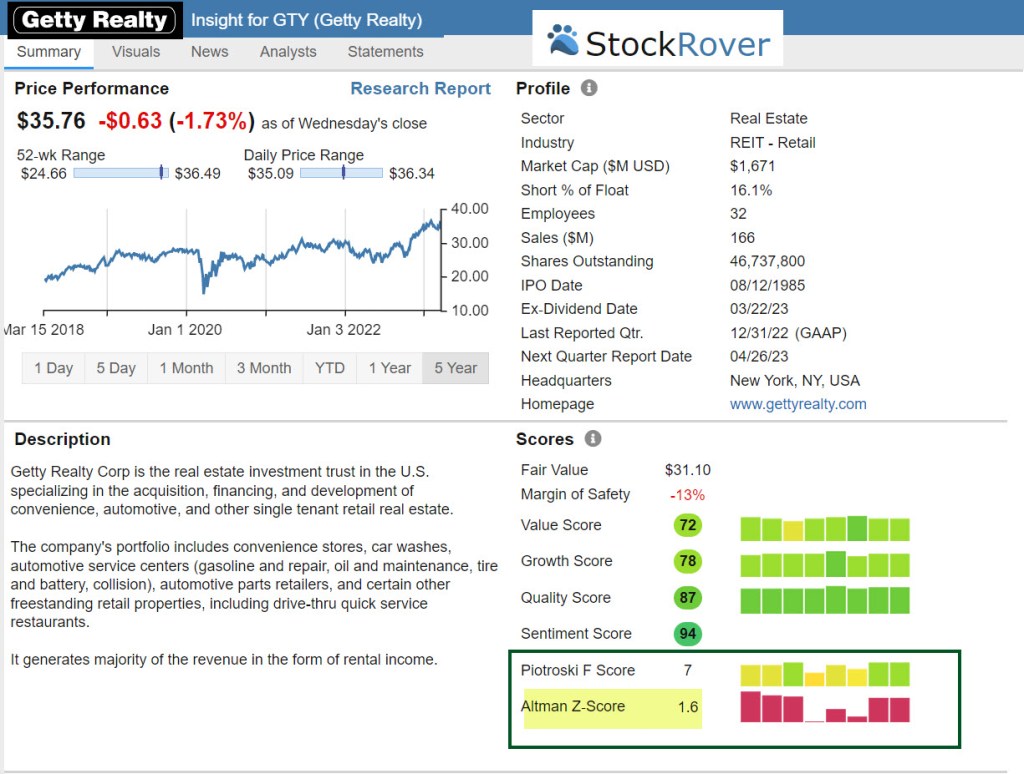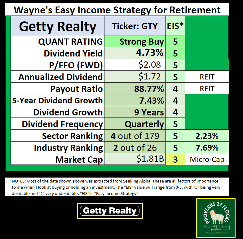 If you look at my score card, you will see a lot of fives. Even the pieces that are rated four are really quite good for a REIT. The QUANT rating is solid, and the ranking of GTY compared to both the sector and the industry are in the top 10% of all of the similar businesses.