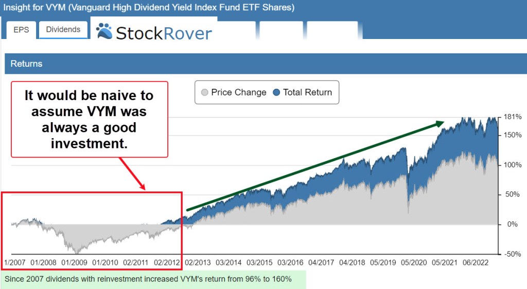 Therefore, an ETF like VYM (Vanguard High Dividend Yield ETF) is one such bundle for a dividend growth investor. There are many reasons this is a good strategy.