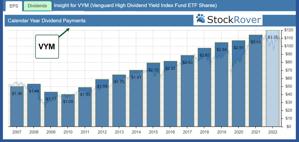 VYM fits my requirements as a long-term ETF income investment. It is in our top five investments. I also like SCHD and DGRO for diversification.