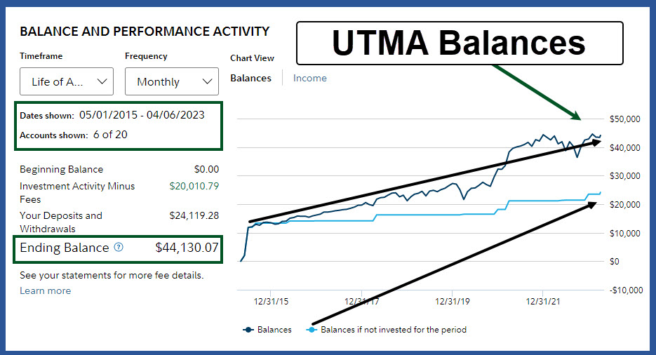 In May of 2015 Cindie and I established UTMA accounts for each of our six grandchildren after getting permission from their parents to do this. My goal was to accomplish three things. The first pertains to wisdom and modeling giving. Proverbs 13:22 says, “A good man leaves an inheritance to his children’s children, but the sinner’s wealth is laid up for the righteous.” The second was to give them a resource in adulthood that would be better than the gifts that often get broken or sold at a garage or yard sale. Finally, I hoped to be able to give them some foundational training in the skill of investing with wisdom.