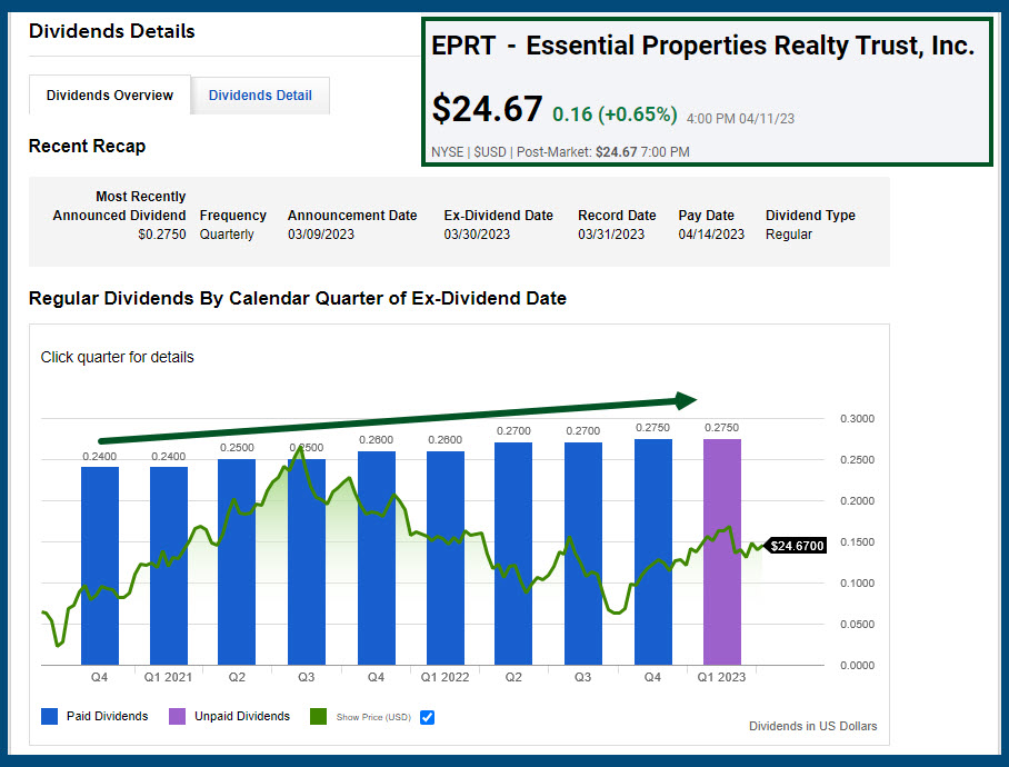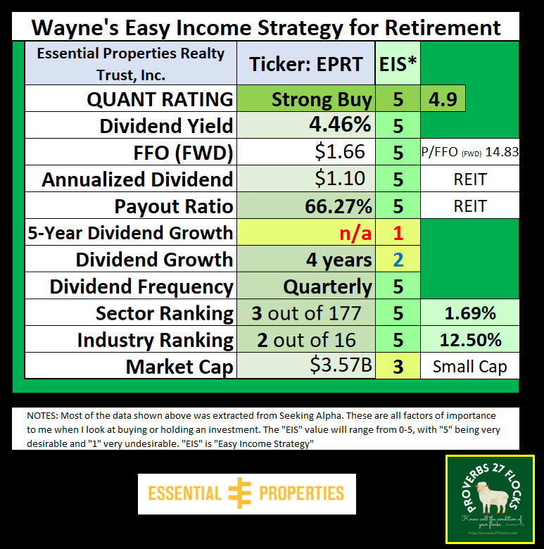 My conclusion is that EPRT is a worthy addition to our portfolio. Therefore, I purchased shares of EPRT for both my IRA and Cindie’s IRA.