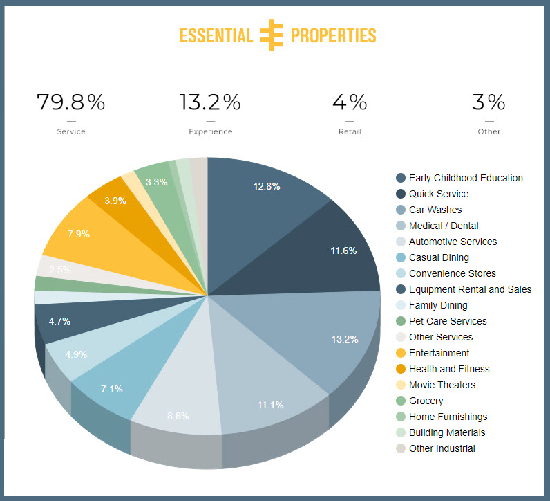 If you look at their website, you will find that they buy and lease properties in the following categories: Single-tenant properties, Restaurants, Car washes, Automotive services, Medical and Dental Services, Convenience Stores, Equipment Rental, Entertainment, Early Childhood Education, Grocery Stores, and Health and Fitness. Some of these might be deemed essential, but I’m not certain I would call all of them “essential oils” in the USA economy. However, I think EPRT is a good REIT investment.