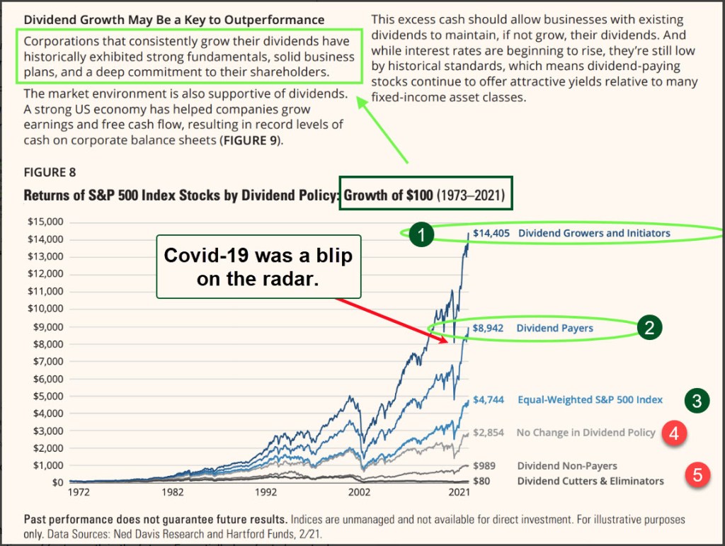 Finally, if you own an investment that pays a dividend, and the company cuts or suspends the dividend, you should seriously consider selling that investment. There are certainly exceptions to that rule of thumb, but it is a good warning flag for asking yourself, “Does this investment still make sense for the long-term?” Never marry and investment and declare “until death I do part.”