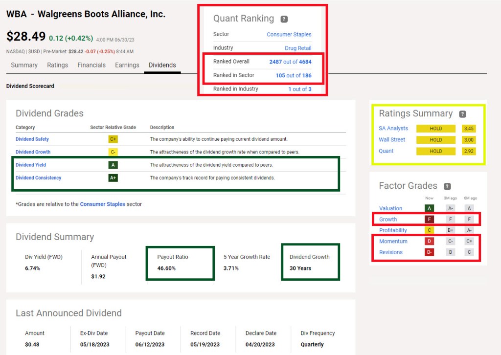 WBA Dividends. SOURCE: Seeking Alpha