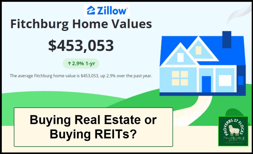 If we compare the total value of our home with the total value of our REIT investments, it is easy to see that our home is “worth more than” our REIT holdings. Our REIT holdings currently have an average dividend yield of 5.8%. One can argue that I might be better off selling the REITs and buying short-term FDIC-insured CD’s. If I was a nervous investor, that would make sense. However, a CD that is worth $1,000 today will probably be worth less than $1,000 next month. The potential for an increase in the value of our REIT investments is far greater.