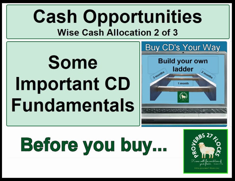 Take a look at your bank or credit union statement. Do you like what you receive in interest? Are the CDs that your provider offers available in 1-month, 2-month, and 3-month durations paying at least 5%? Will they let you buy CD ladders using their website? If not, then you may want to consider taking the time to move to a better solution. Yes, I know there is some work involved, but your money should be working as hard as you do.
