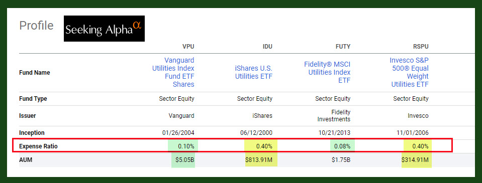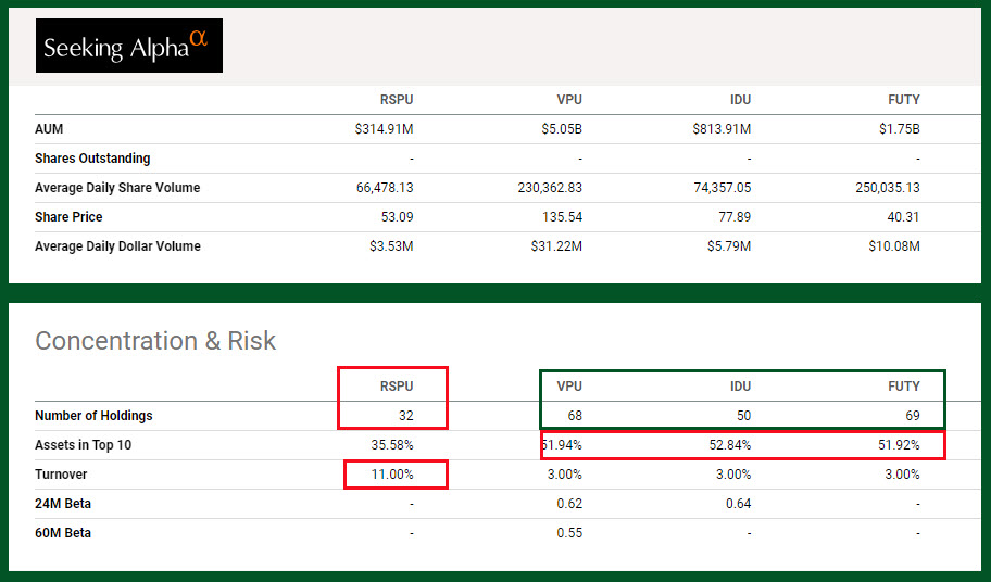 By the same token, AUM for VPU and FUTY are acceptable. I think the other two are less desirable. If an ETF holds less than $1B in assets you should consider the risks of investing in a smaller fund.