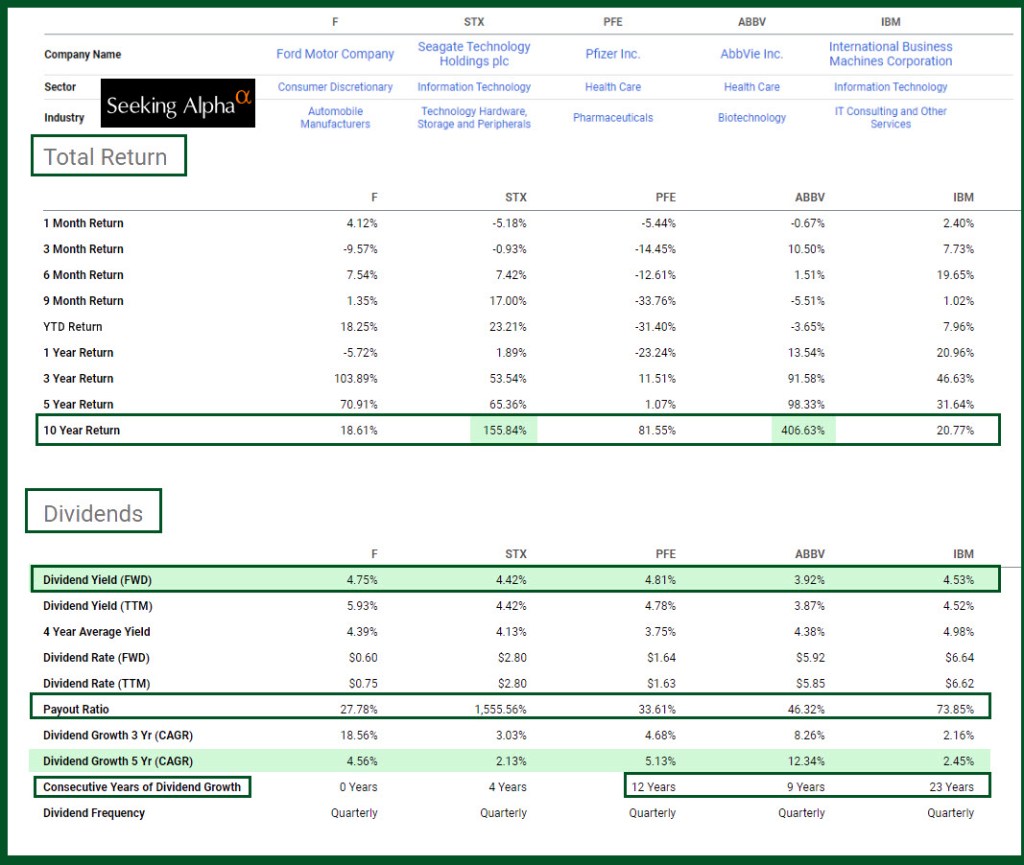 If you examine the top five investments by 10-year returns, dividend growth, QUANT rating and rankings, you might think I have some rather average investments. However, they do have some common traits. For example, all of them have dividend yields of about 4% or better. In addition, each of them has a history of dividend growth. It is also important that while there is an overlap in sectors, each of them is in a different industry classification.