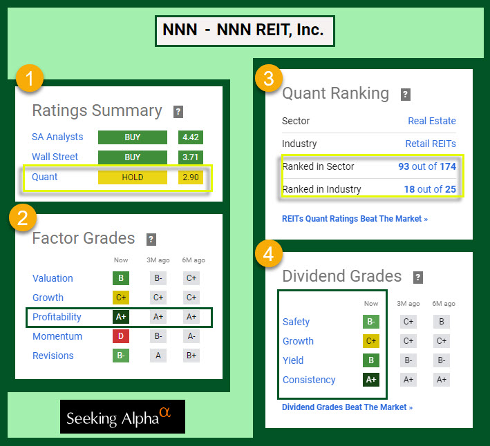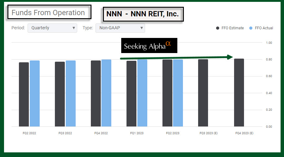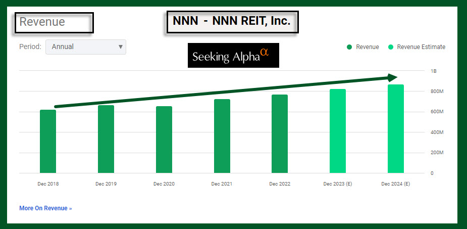 If you go to the NNN website, they tell a different story than the story I read on Seeking Alpha. In fact, even the text on Seeking Alpha says NNN “is one of only three publicly traded REITs to have increased annual dividends for 34 or more consecutive years.” So they say one thing in their company profile for NNN and quite a different thing about the actual data. (Note: Seeking Alpha says 32 years, so although they fixed most of the problems, they are still a bit shy of the real growth in years.)