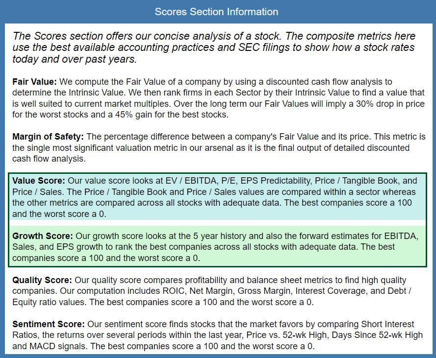 If we look at the value and growth scores on StockRover, we can see that AVGO has a higher growth score than value score. The important thing isn’t whether or not AVGO is this or that, it is if the position fits with your investment strategy. In my case, AVGO is a great addition to the information technology stocks in our portfolio. Most investors are afraid to buy shares of AVGO, because each share will cost you about $830. But it is better to buy one share of AVGO than 55 shares of AT&T (T). You get more shares for your investing dollar with T, but you sacrifice in other ways that you may regret five years from now.