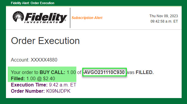 While I have cut back on my options trading activity, there are opportunities that are easy to spot and don’t take much time. Thursday, I spent about ten minutes and earned an additional $543.65 rolling one of the AVGO covered call options from a contract price of $930 to $935. I was able to make a profit because the $930 contract expires November 10. The new $935 contract expires one week further out on Friday, November 17. This trade took about five minutes and increased my potential capital gain by $500. Here is the math: ($935 – $930) x 100 = $500.