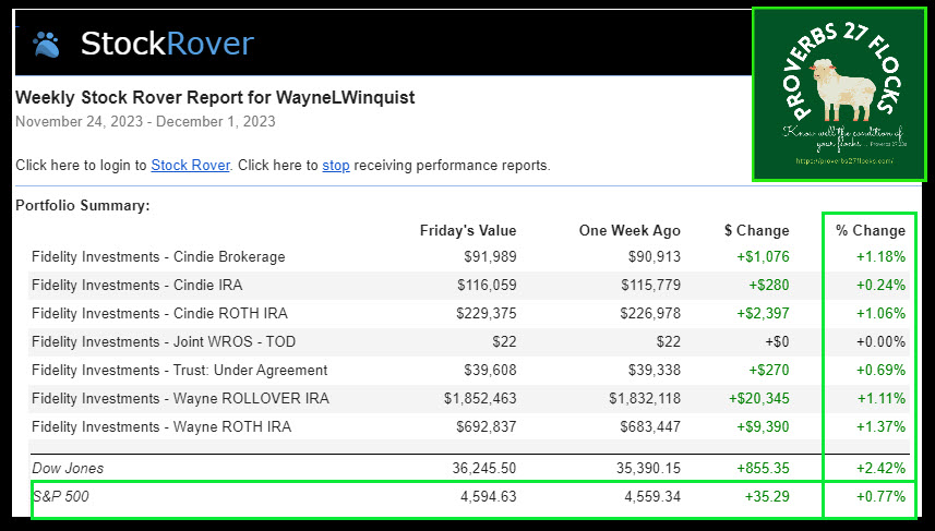 I own 600 shares of ABBV as a long-term investment. The shares are currently worth about $86,000 and they produce about $3,700 in dividends each year. The following image is part of an email I get from StockRover each week. It is a helpful way to watch what is happening with our accounts.