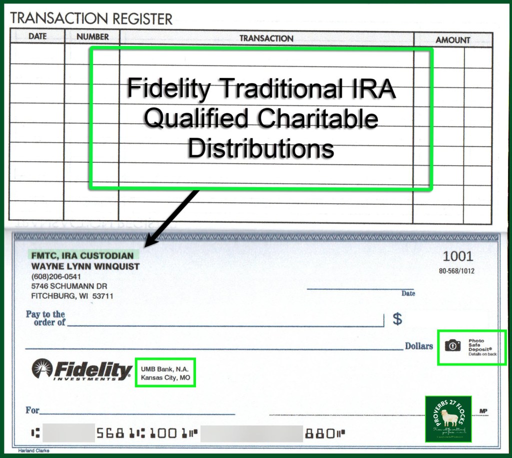 The first QCD contribution from my traditional Fidelity Investments’ IRA has been sent using Fidelity’s web site. I requested checks for my traditional IRA to make it easier to send funds directly to a charity without waiting for Fidelity to print and mail the check. Those checks arrived yesterday.