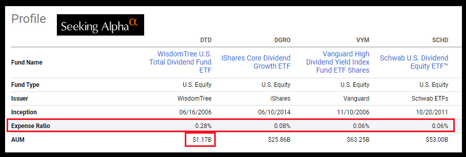 Thank you for your post. Question: DTD has an expense ratio of 0.28% vs 0.06 to 0.08% for VYM, DGRO and SCHD. Do you consider this a drawback or do your reasons for buying outweigh the higher expense ratio?