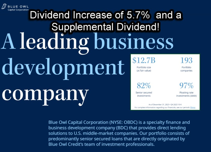 When I wrote about Business Development Companies TSLX and MAIN in my previous two posts, I said TSLX was paying a special dividend and MAIN calls their non-repeating “special” dividend a “supplemental” dividend. Now Blue Owl Capital, another BDC, has declared a dividend increase and a supplemental dividend. It doesn’t get better than that.