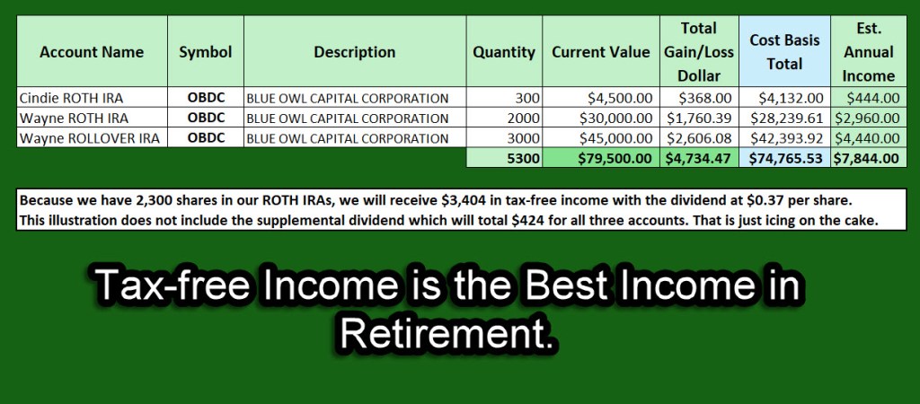 Cindie and I own 5,300 shares of OBDC as a long-term investment. It is NOT one of our Top Ten Holdings, but it is a significant investment.