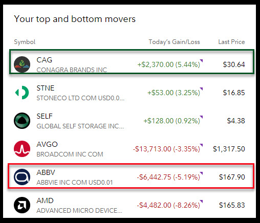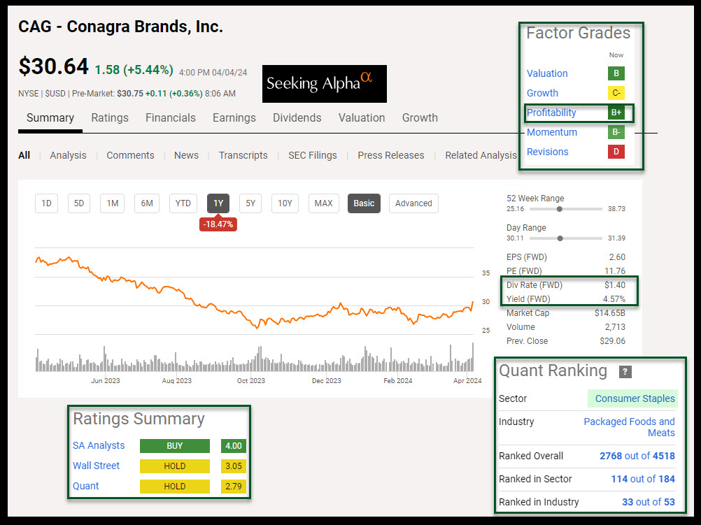 Although ABBV has a “Strong Buy” QUANT rating on Seeking Alpha, and CAG is a “Buy”, this doesn’t mean you should buy shares. Look at your total portfolio. Don’t buy an investment just because I do. Also bear in mind that you probably already own shares of these investments if you have ETF or mutual funds in your portfolio. For example, DGRO has ABBV as one of its top ten investments.