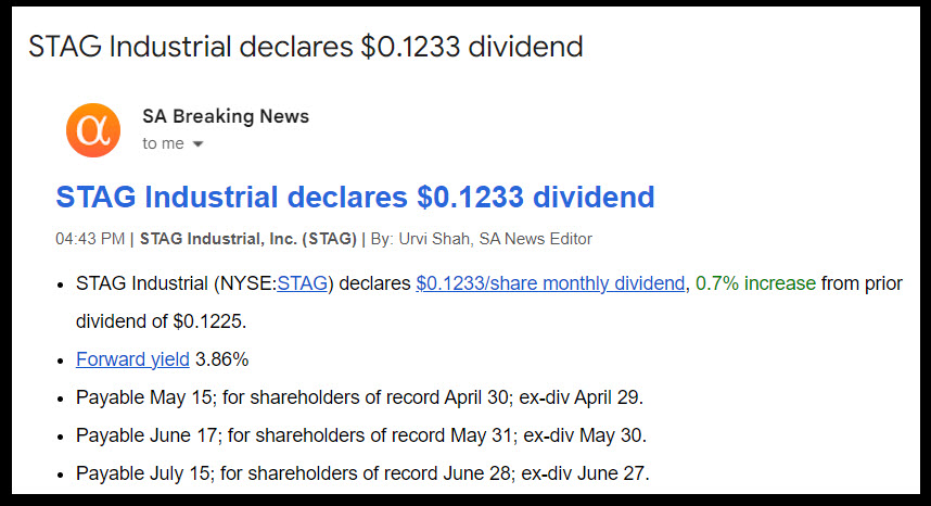 As many of my readers know, the recent global events have caused companies in the USA to rethink sending all manufacturing overseas. As a result, more warehouse capacity is needed for parts and finished products. STAG fits the bill.
