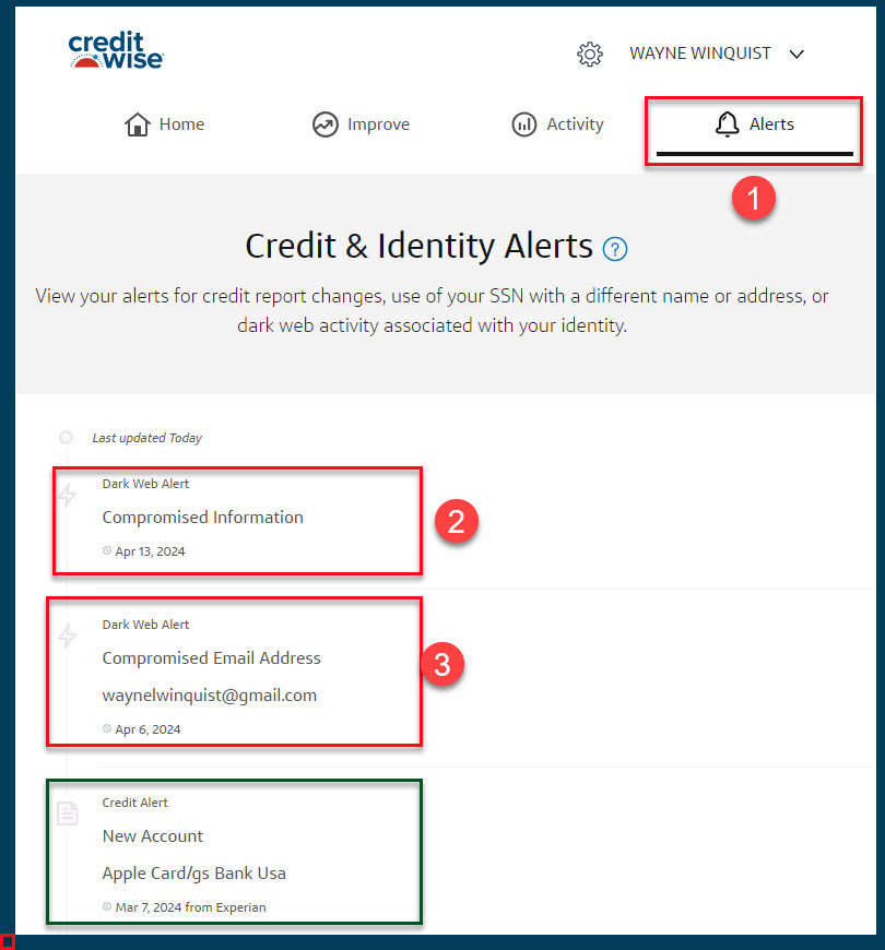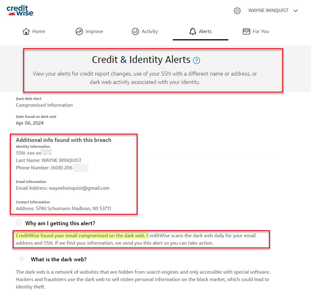 These images reveal what I received from Capitol One CreditWise. At the very least you should monitor your credit reports. Even big companies like AT&T have had recent break ins. We used to be AT&T customers, so I suspect some of our data has been compromised.