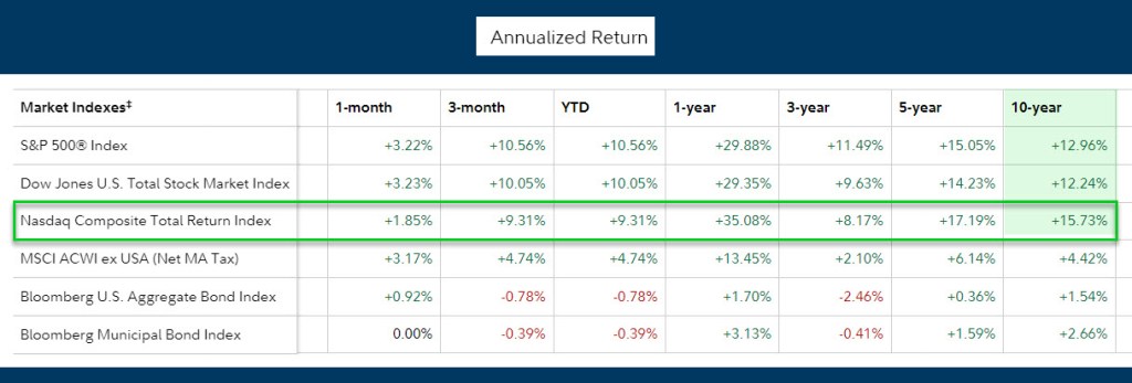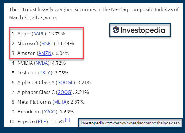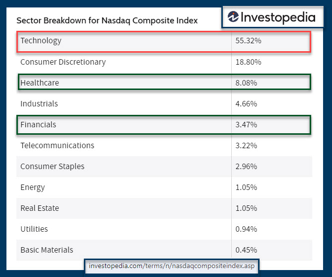 Now for understanding: What is the Nasdaq Composite Index (IXIC)? It is a list of all of the equity securities listed on the Nasdaq. “They include common stocks, ordinary shares, American depositary receipts (ADRs), units of real estate investment trusts (REITs), and publicly traded partnerships, as well as tracking stocks.” – Investopedia