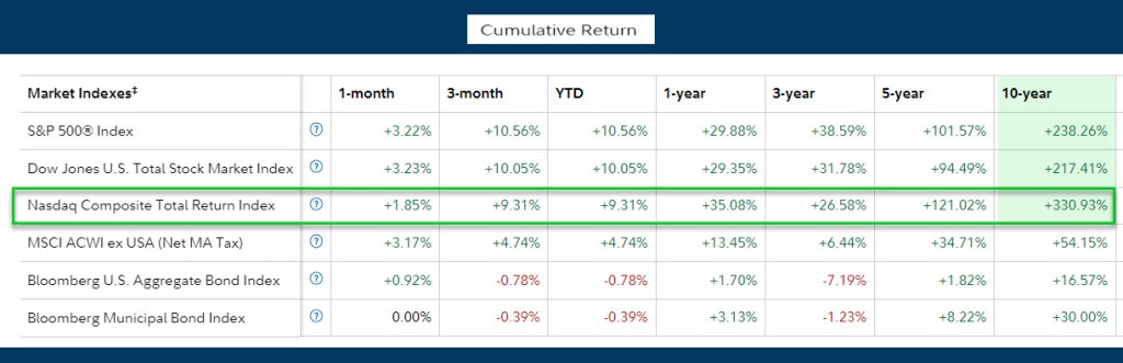 “Folly is a joy to him who lacks sense, but a man of understanding walks straight ahead.” If you use an investment advisor, then you should understand how the returns your advisor is delivering compare with the three significant indices. The ticker symbols of the three I have mentioned are IXIC, SPX, and DJIA. I don’t believe many investors need to beat these indices, and most cannot. However, if your advisor is delivering less than 8-10% returns over the last ten years, you need to carefully evaluate if you are getting value for the payments you make to your advisor for managing your investments.