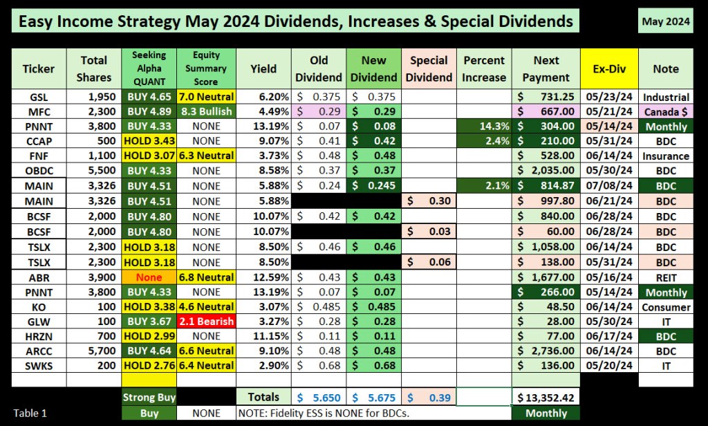 The Seeking Alpha QUANT Strong buys include GSL, MFC, MAIN, BCSF, and ARCC. Understand that three of these are BDCs (Business Development Companies.) If the QUANT rating is Buy or Strong Buy (greater than 4.50) then I add shares from time-to-time.