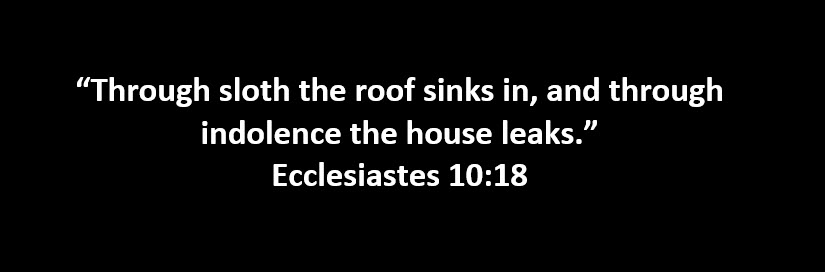 “Through sloth the roof sinks in, and through indolence the house leaks.” Ecclesiastes 10:18