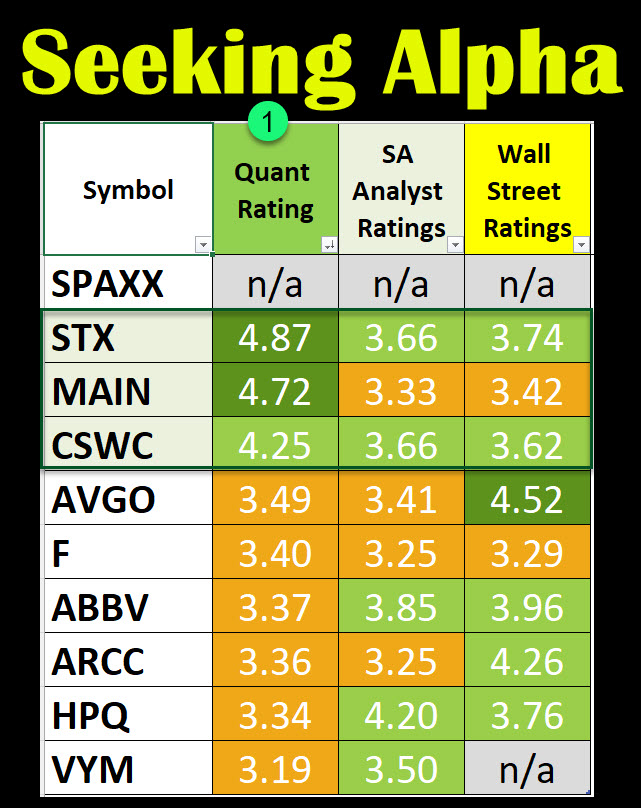 When buying an investment I always consider the Seeking Alpha QUANT Ratings. I also want to see a strong PROFITABILIY grade, and it helps to have positive MOMENTUM. Momentum is the power of the upward move, or the deterioration caused by falling stock prices. All of our top ten have positive profitability grades of B+ or better. All of them, except ARCC, have momentum grades of B- or better with the exception of ARCC.