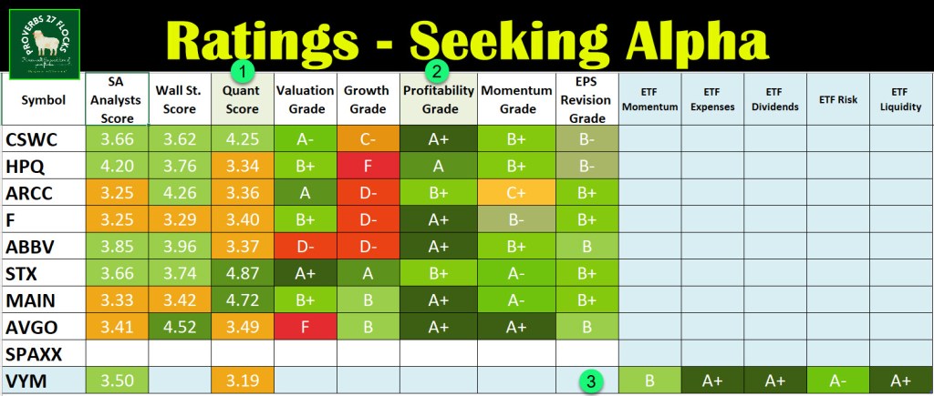 VYM’s Seeking Alpha Ratings