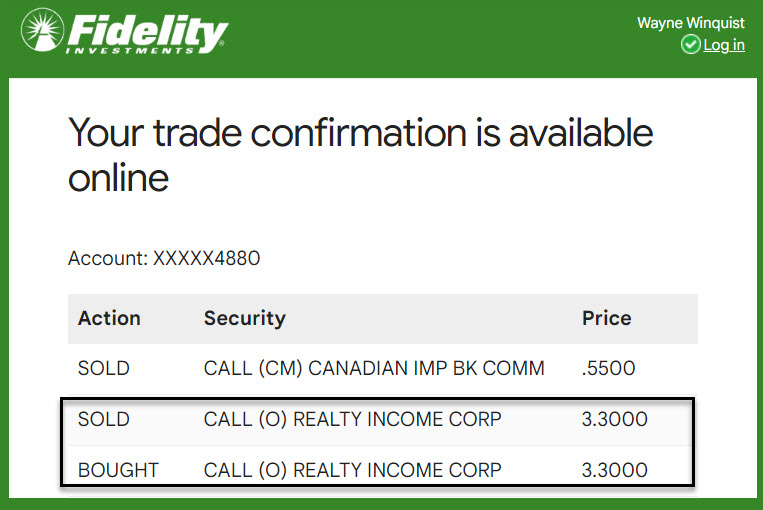 I recently decided it would be acceptable to sell some of our Realty Income shares. We currently own 1,200 shares across six Fidelity accounts. I sold a covered call options contract on the 500 shares in my traditional IRA with a price of $57.50 to expire on August 16, 2024. Since that time, the shares have bounced up to over $60 per share. It seemed highly likely that my shares would be called away.