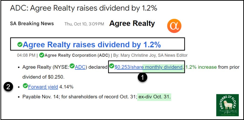 A REIT gives me broad ownership of many properties across wide geographies. Therefore, an investment like ADC (Agree Realty Corporation) makes sense to me. ADC pays a monthly dividend as well.