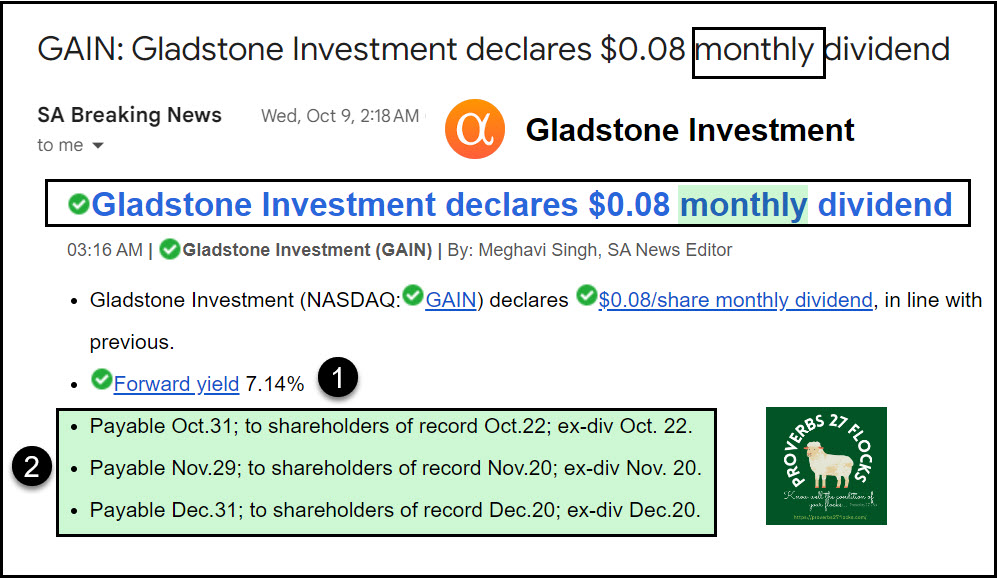 For business investments, a BDC gives me great diversification into many small businesses. GAIN (Gladstone Investment), for example, is a good BDC that pays a monthly dividend, just like ADC. Gladstone Investment Corporation is business development company, specializes in lower middle market, mature stage, buyouts; refinancing existing debt; senior debt securities such as senior loans, senior term loans, lines of credit, and senior notes; senior subordinated debt securities such as senior subordinated loans and senior subordinated notes; junior subordinated debt securities such as subordinated notes and mezzanine loans; limited liability company interests, and warrants or options. The fund does not invest in start-ups. The fund seeks to invest in manufacturing, consumer products and business/consumer services sector. It seeks to invest in small and mid-sized companies based in the United States. The fund prefers to make debt investments between $5 million and $30 million and equity investments between $10 million and $40 million in companies.